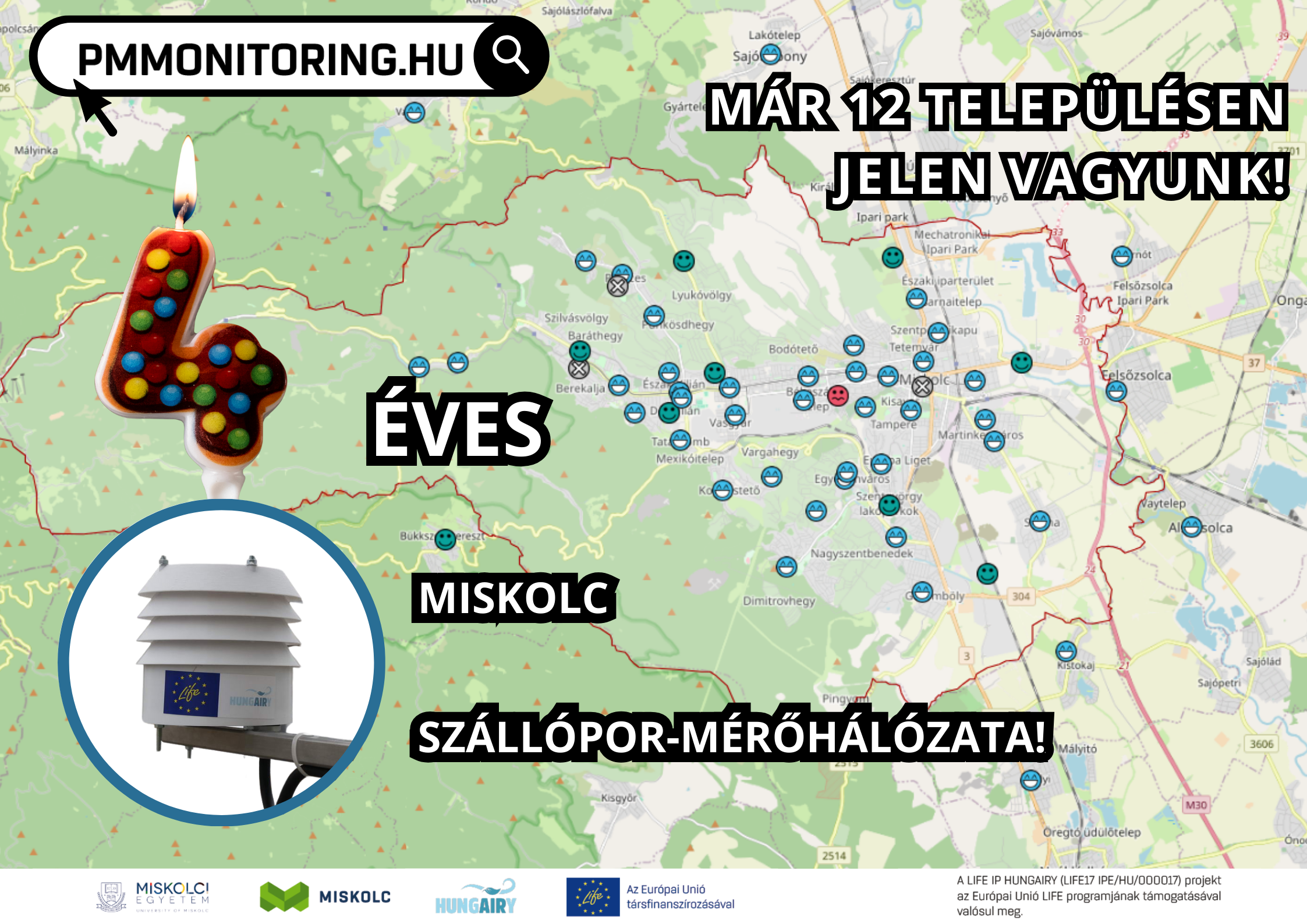 A Miskolci Egyetem a HungAIRy projekt keretében Miskolcon és Kaposváron hozott létre nagy felbontású szállópor (PM) monitoring hálózatot, amely a levegőminőség pontosabb megismerését és a környezeti szennyezések feltérképezését szolgálja. A hálózat 2021 szeptemberében indult – azóta folyamatosan segíti a kutatást és a környezetvédelem ügyét.